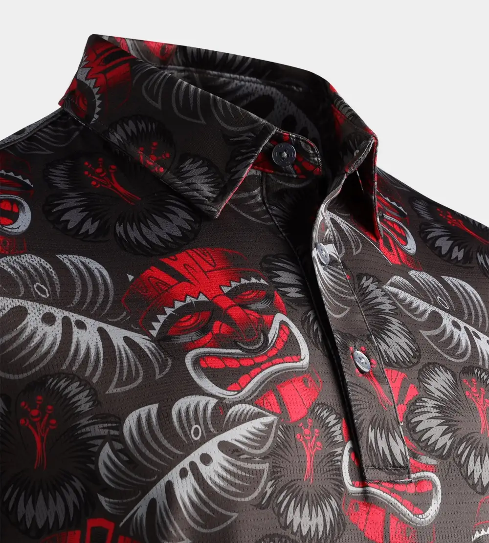 TIKI POLO – CHARCOAL / RED